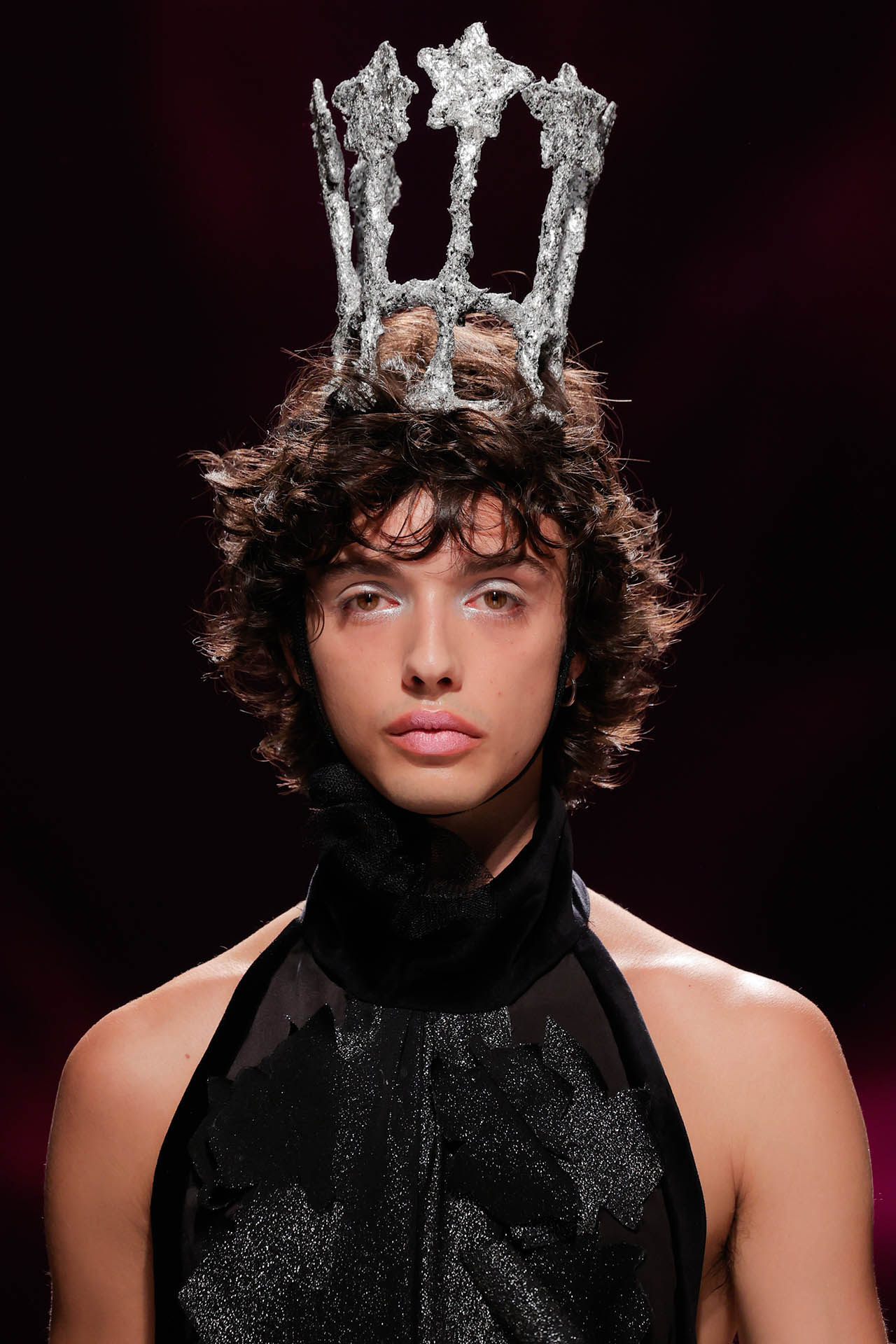 Pulling from Portuguese history, Gabriel Silva Barros designed a wardrobe that merges wearability with theatrical elegance. A “noman’s” space where contrasts can coexist. A collection of beauty, between theatrical drama and delicate intimacy.