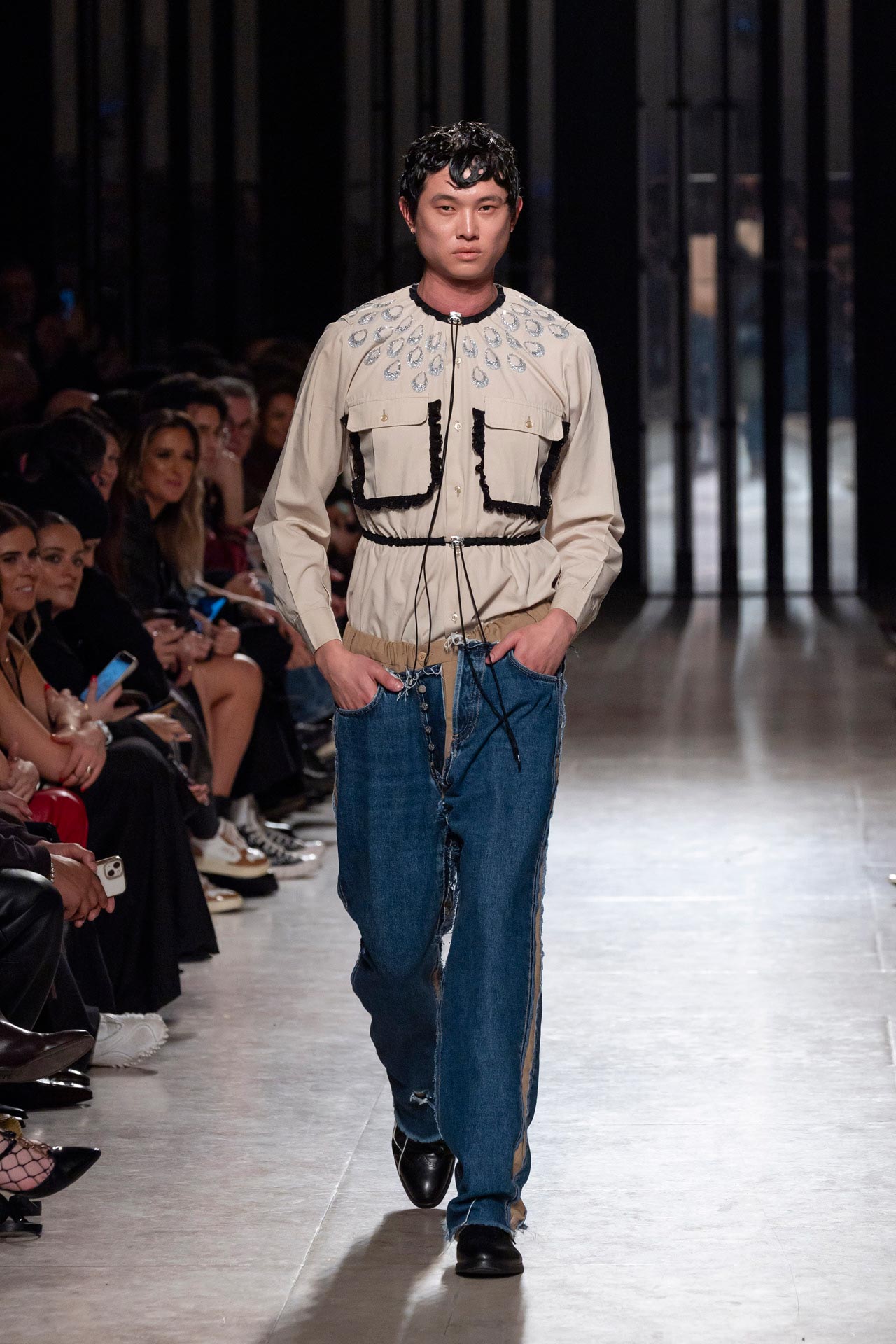 UP is more than a collection: it is a manifesto, a challenge to rethink the value of clothing, to elevate awareness, elevate material and, above all, elevate the way we look at what already exists and resignify it through upcycling, transforming past stories into a new visual narrative. This collection proposes an ascent from discarded pieces to desirable ones.