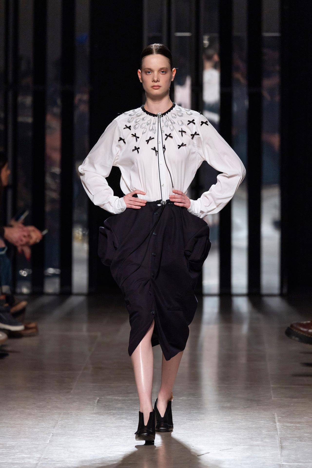 Alongside the FW 26/27 collection, Dino Alves also presents a capsule collection with Humana: UP – Upcycling Collection Dino Alves X Humana. This collaboration represents more than a simple institutional partnership, showing the importance of bringing together the artistic dimension of Designer Fashion with social and environmental responsibility. By creating this collection from second-hand pieces and presenting it on the Lisboa Fashion Week runway, the Designer seeks to symbolise a certain paradigm shift: Fashion as a tool for transformation, where creativity and sustainability can move side by side, and where contemporary luxury can emerge from reuse and ethical commitment, without compromising aesthetic impact and artistic originality.