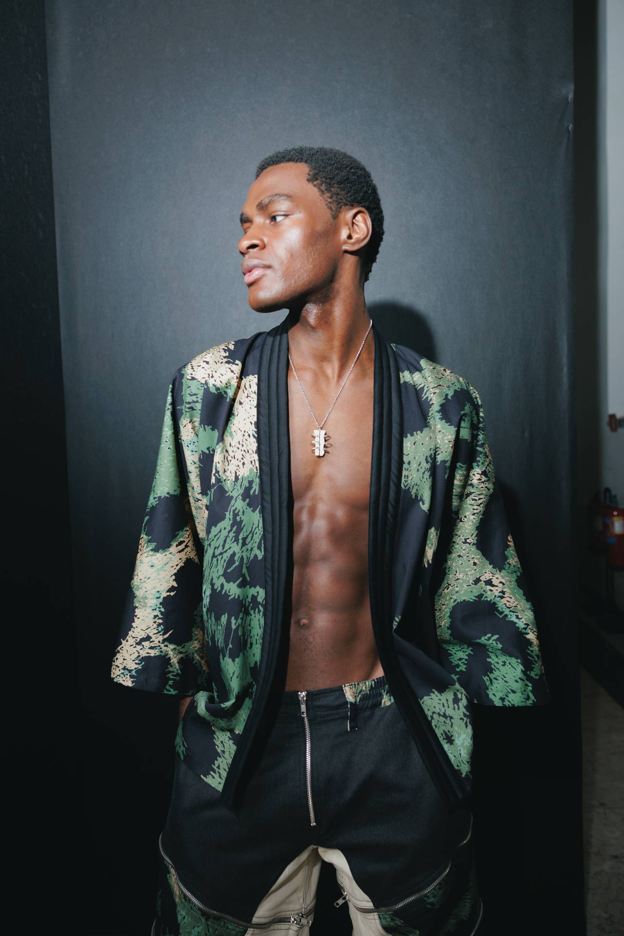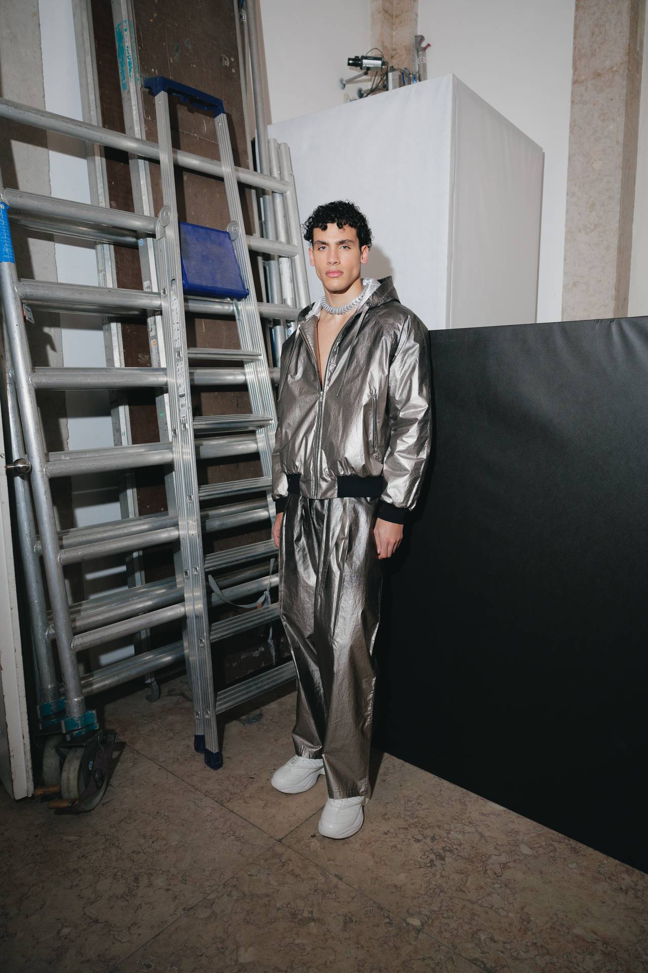 The silhouettes are intentionally oversized, creating a cocoon of privacy for the wearer, both during intimate moments of composition and off stage. This generous scale reflects a need for protection and retreat within a journey defined by constant exposure.