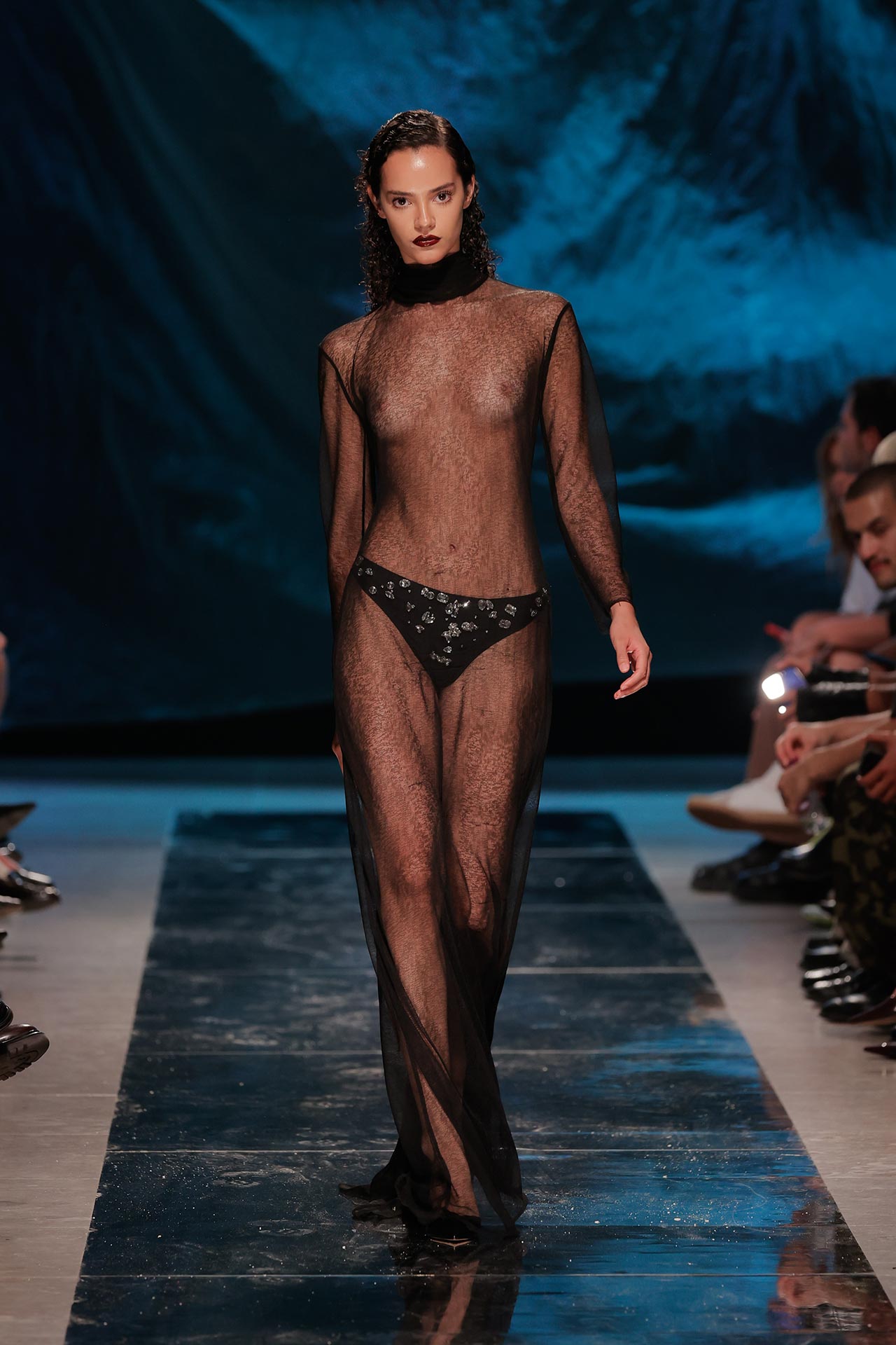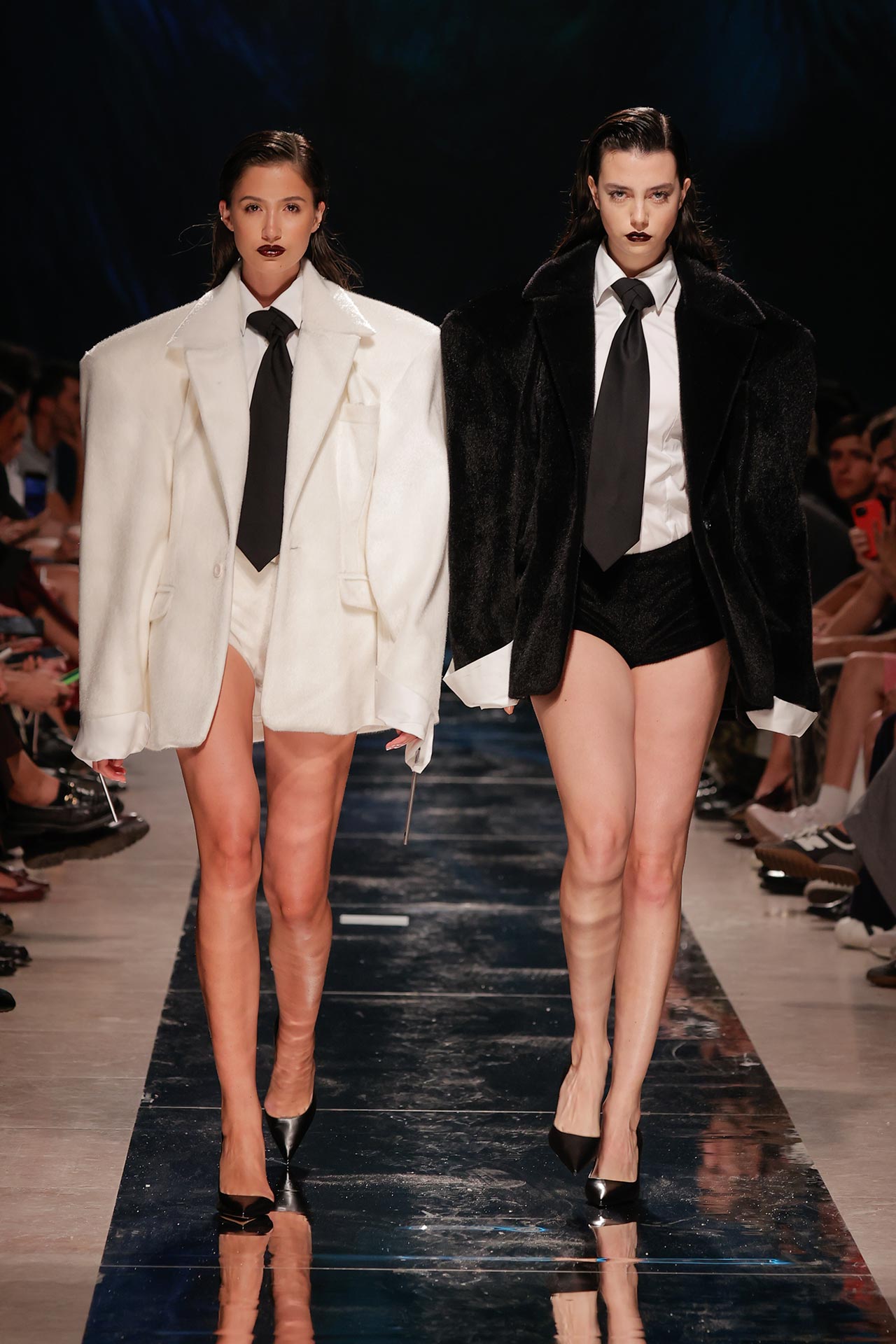 A coleção abre em Génese: o vazio fértil, a tela em branco onde tudo pode nascer. É o sopro inicial da liberdade, ainda sem forma, mas já indomável. Segue-se Fluxo, um corpo em perpétua metamorfose, líquido e infinito, que atravessa fronteiras como se não existissem. No coração desse movimento irrompe Ímpeto: estruturas que se erguem como armaduras, firmes e protetoras, mas que deixam transparecer a vulnerabilidade que as habita. Em Vibração, a pele encontra o som: proximidade crua, emoção à flor, um arrepio que se torna música.