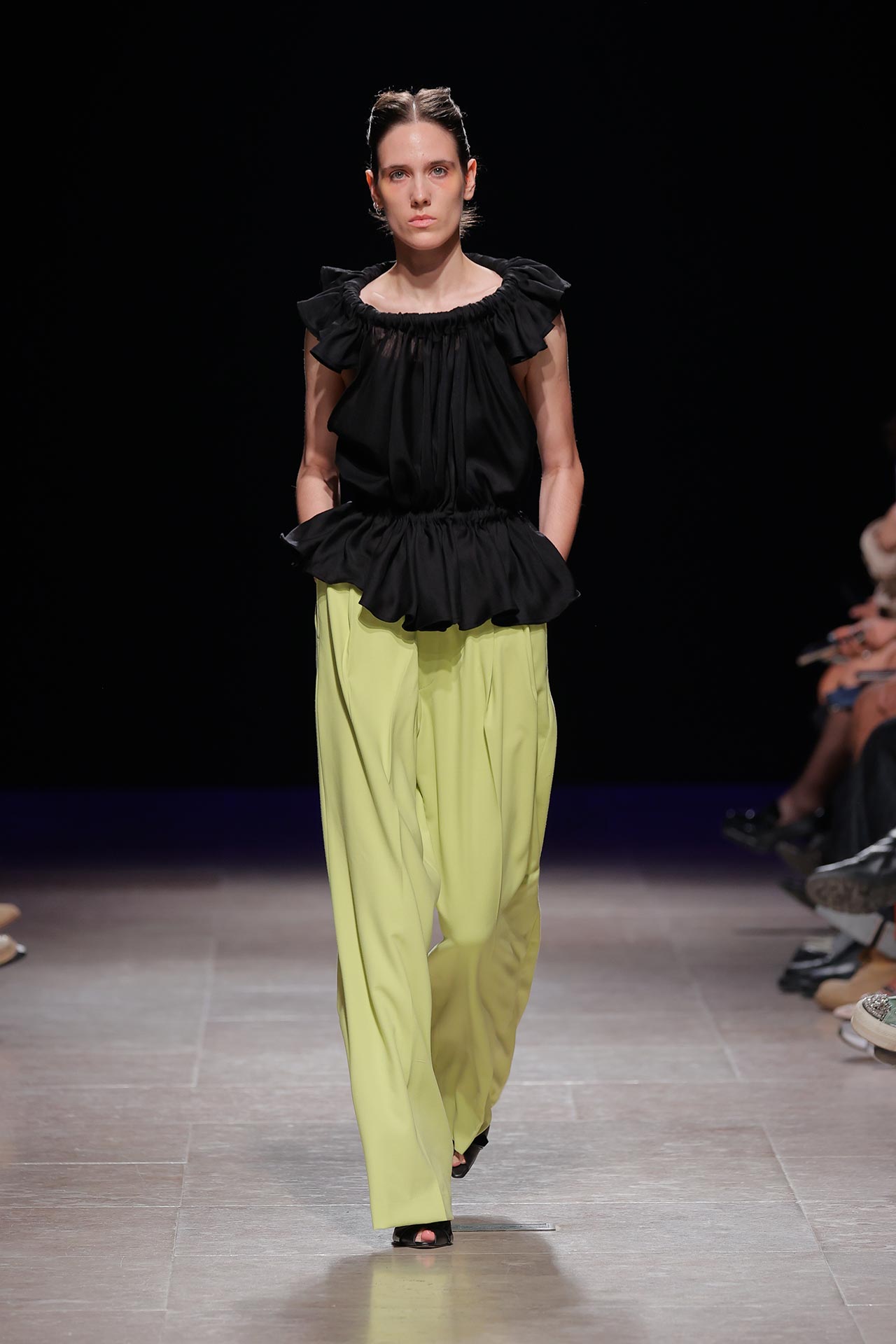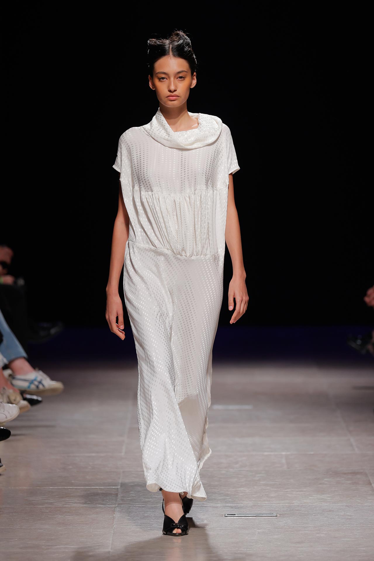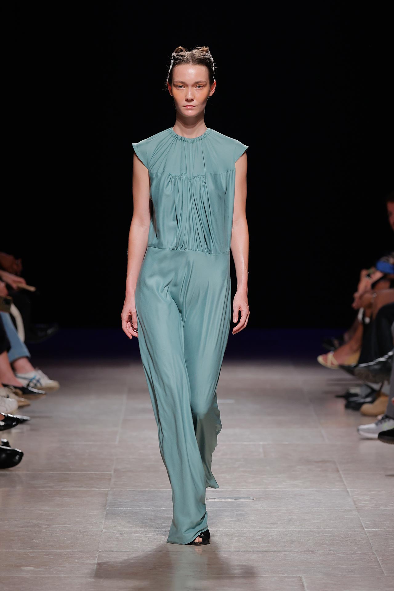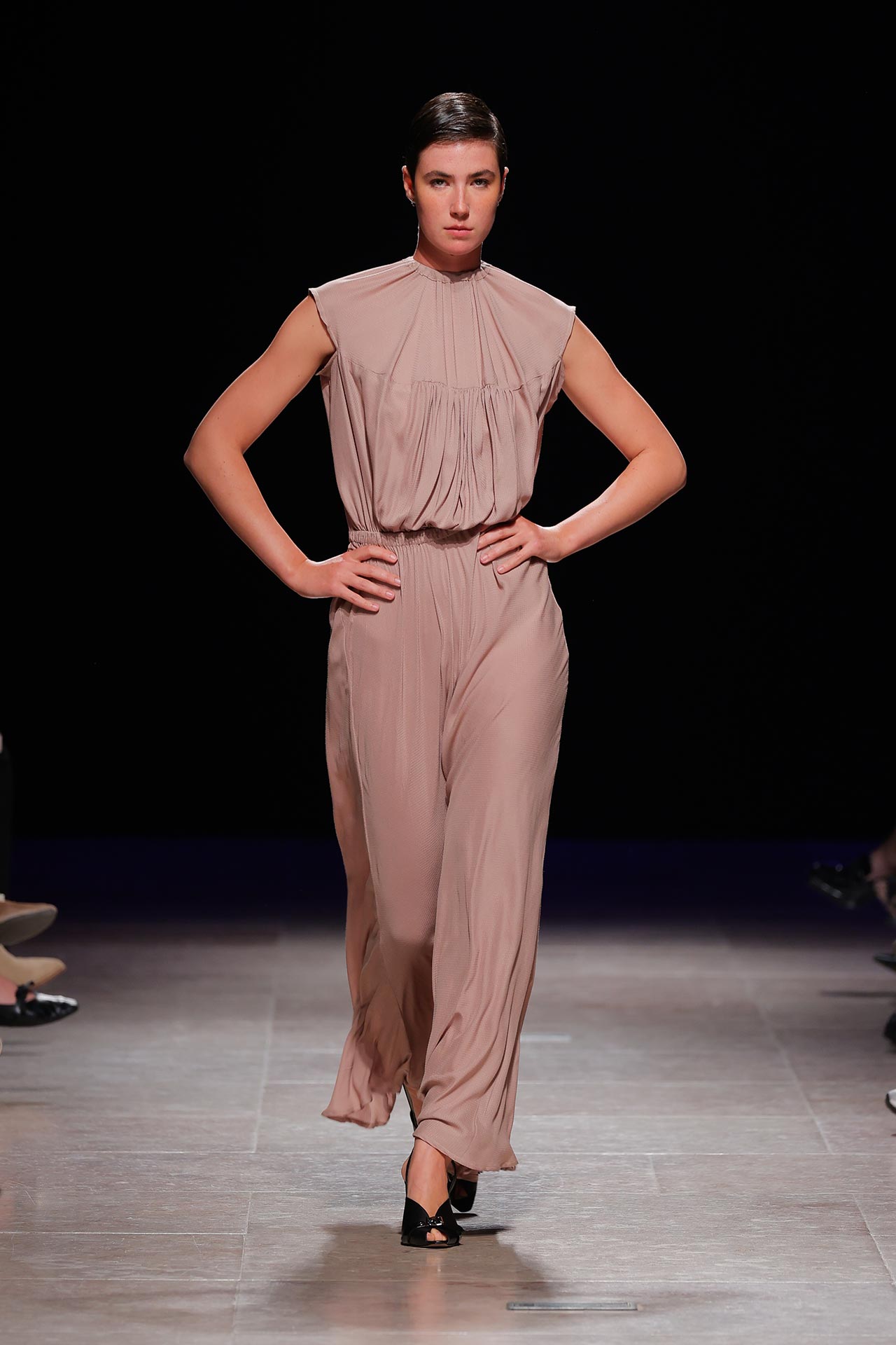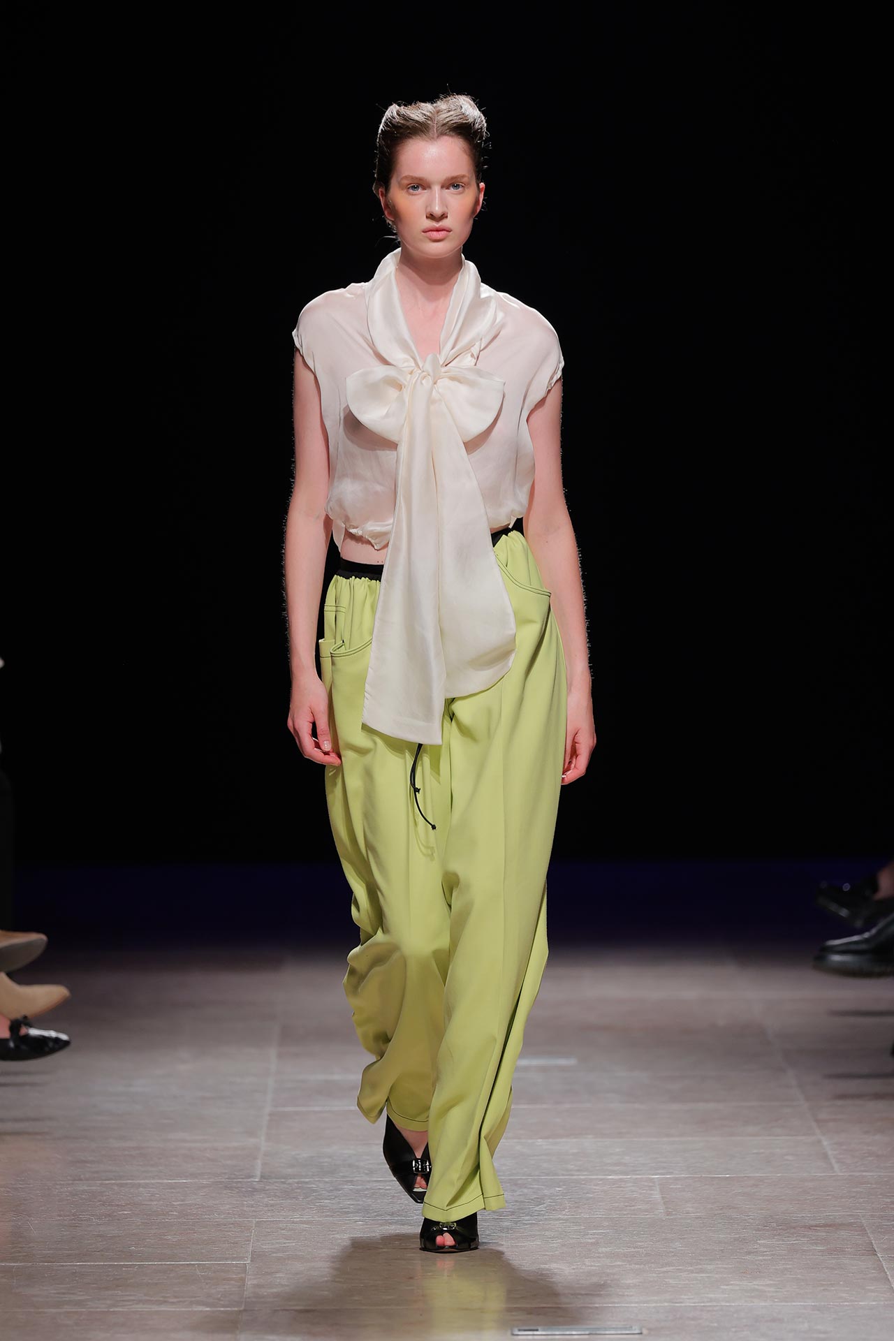 A coleção apresenta uma paleta de cores que percorre o preto, o pérola, o marfim, o verde céladon, o castanho, o verde céu, o amarelo limão, o laranja forte, o xadrez, os tecidos manchados, o azul noite, o azul petróleo, o bordeaux, o rosa chiclete e as riscas de camisaria. Os materiais utilizados incluem viscoses, algodão, satin duchese, mousselines, jerseys, organza, popeline, rede e crepe. Nos detalhes sobressaem os drapeados, os godés multiplicados, a repetição de elementos, elementos que sugerem outras peças, modelagem habitualmente usada para um tipo de peças e aqui aplicada noutras, o contraste entre oversized, o justo e o efeito crinolina. Nesta estação conta ainda com a parceria Dino Alves x Rêve de Flo no calçado feminino.