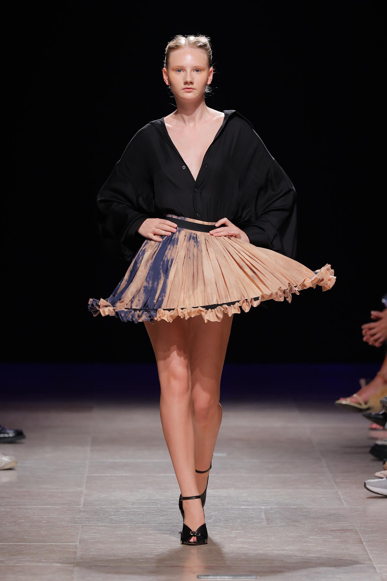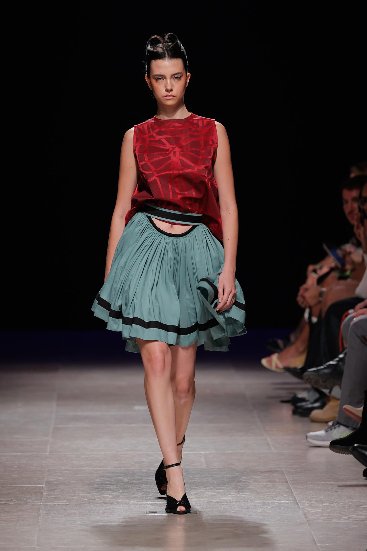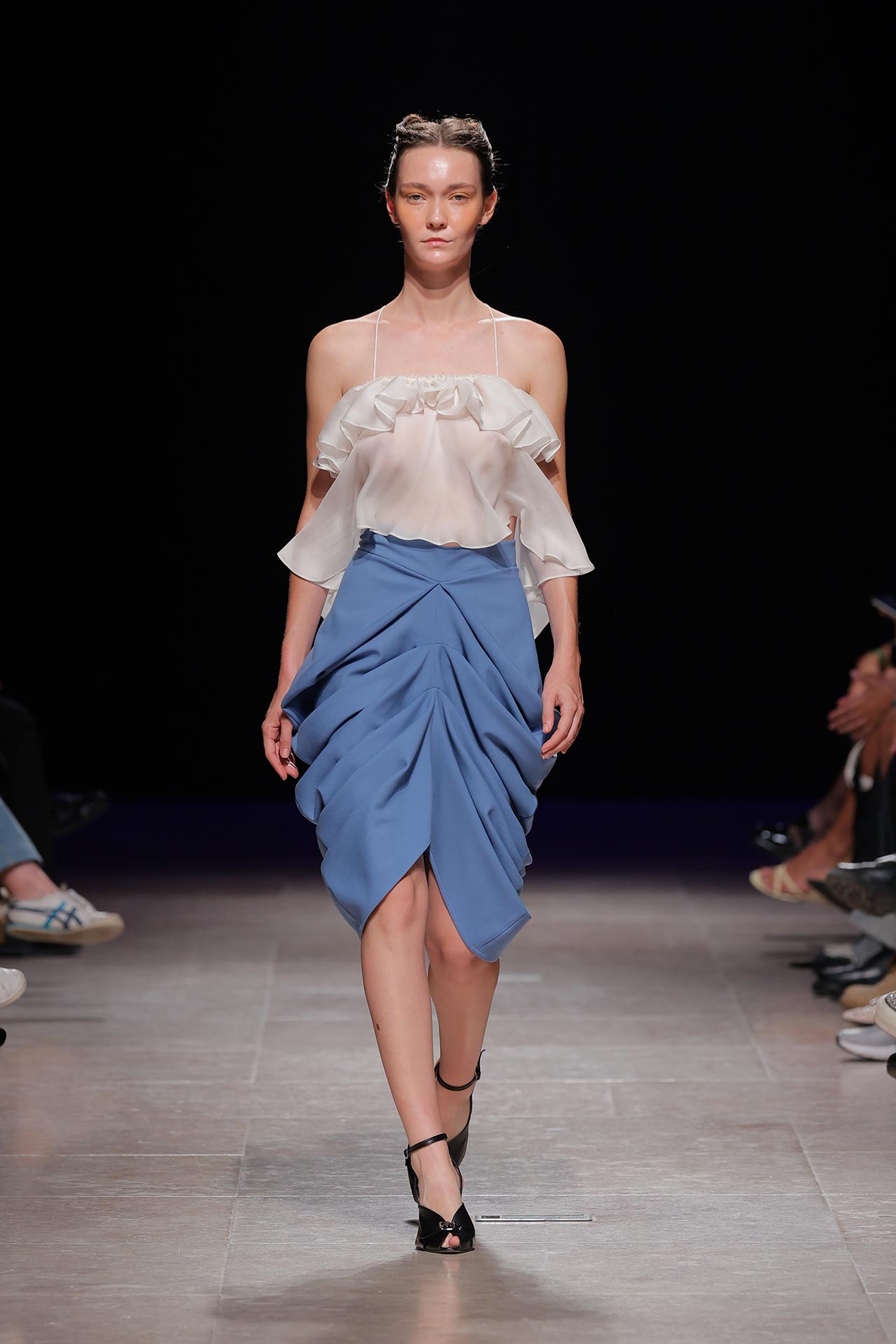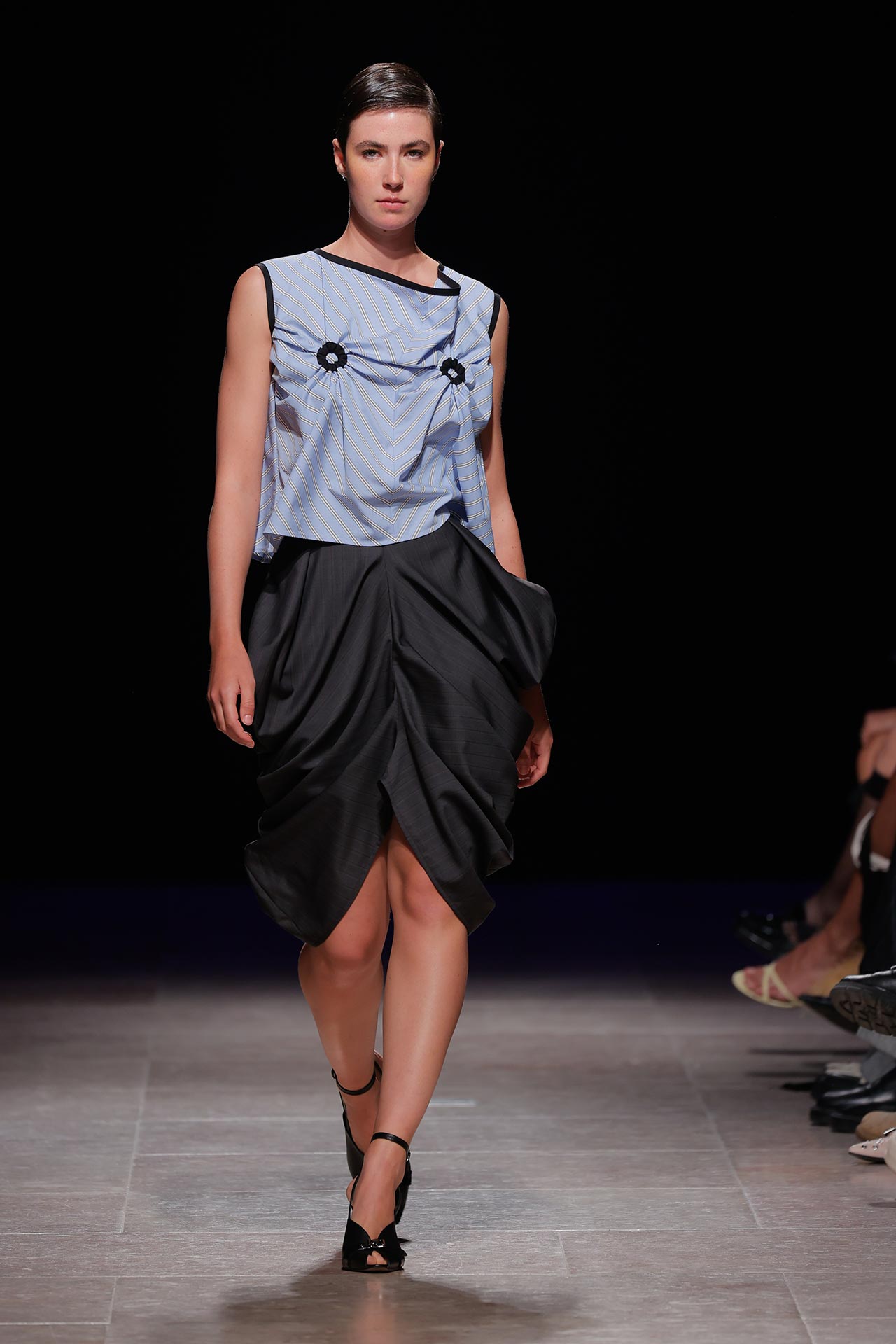 A coleção apresenta uma paleta de cores que percorre o preto, o pérola, o marfim, o verde céladon, o castanho, o verde céu, o amarelo limão, o laranja forte, o xadrez, os tecidos manchados, o azul noite, o azul petróleo, o bordeaux, o rosa chiclete e as riscas de camisaria. Os materiais utilizados incluem viscoses, algodão, satin duchese, mousselines, jerseys, organza, popeline, rede e crepe. Nos detalhes sobressaem os drapeados, os godés multiplicados, a repetição de elementos, elementos que sugerem outras peças, modelagem habitualmente usada para um tipo de peças e aqui aplicada noutras, o contraste entre oversized, o justo e o efeito crinolina. Nesta estação conta ainda com a parceria Dino Alves x Rêve de Flo no calçado feminino.