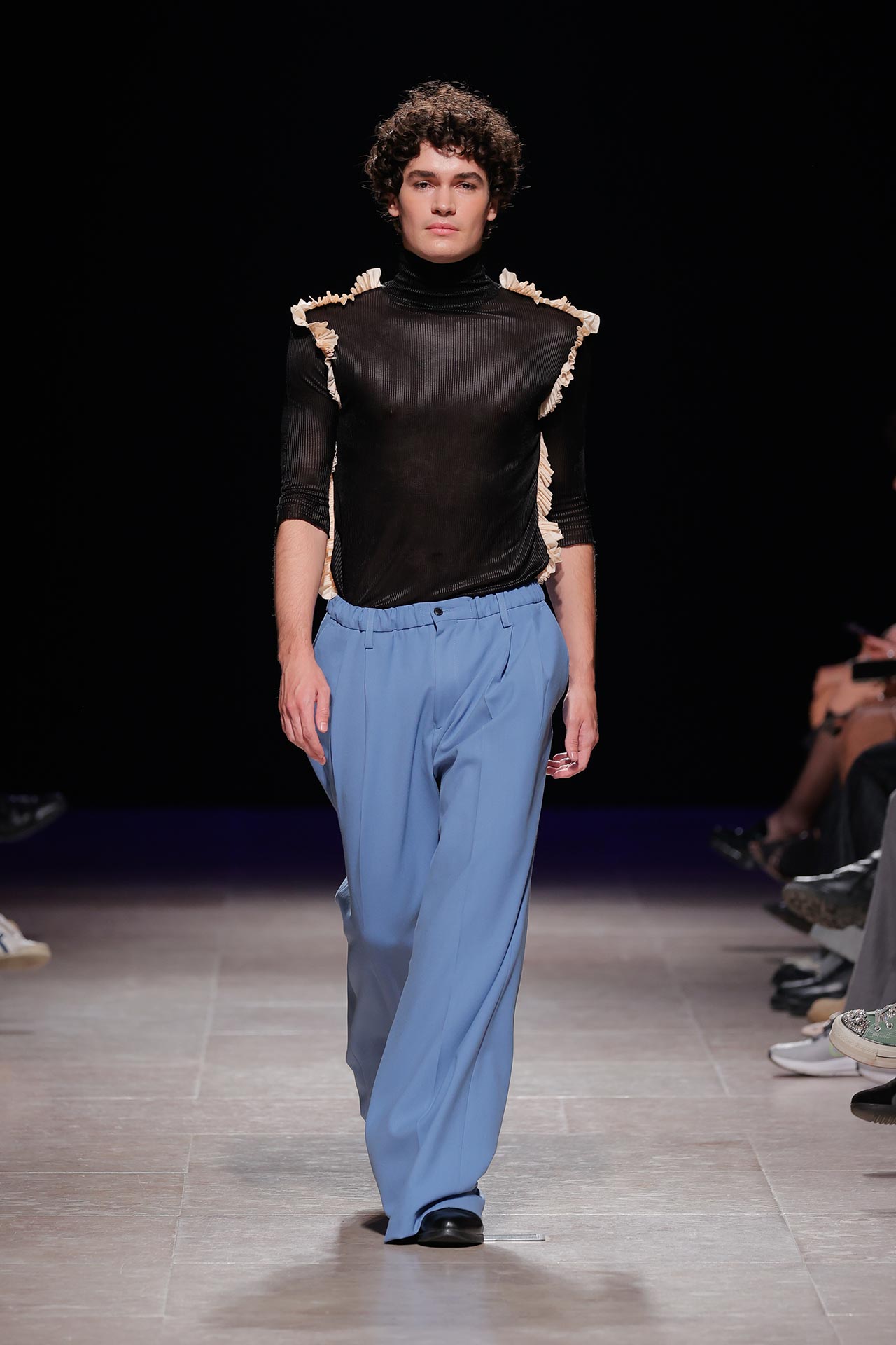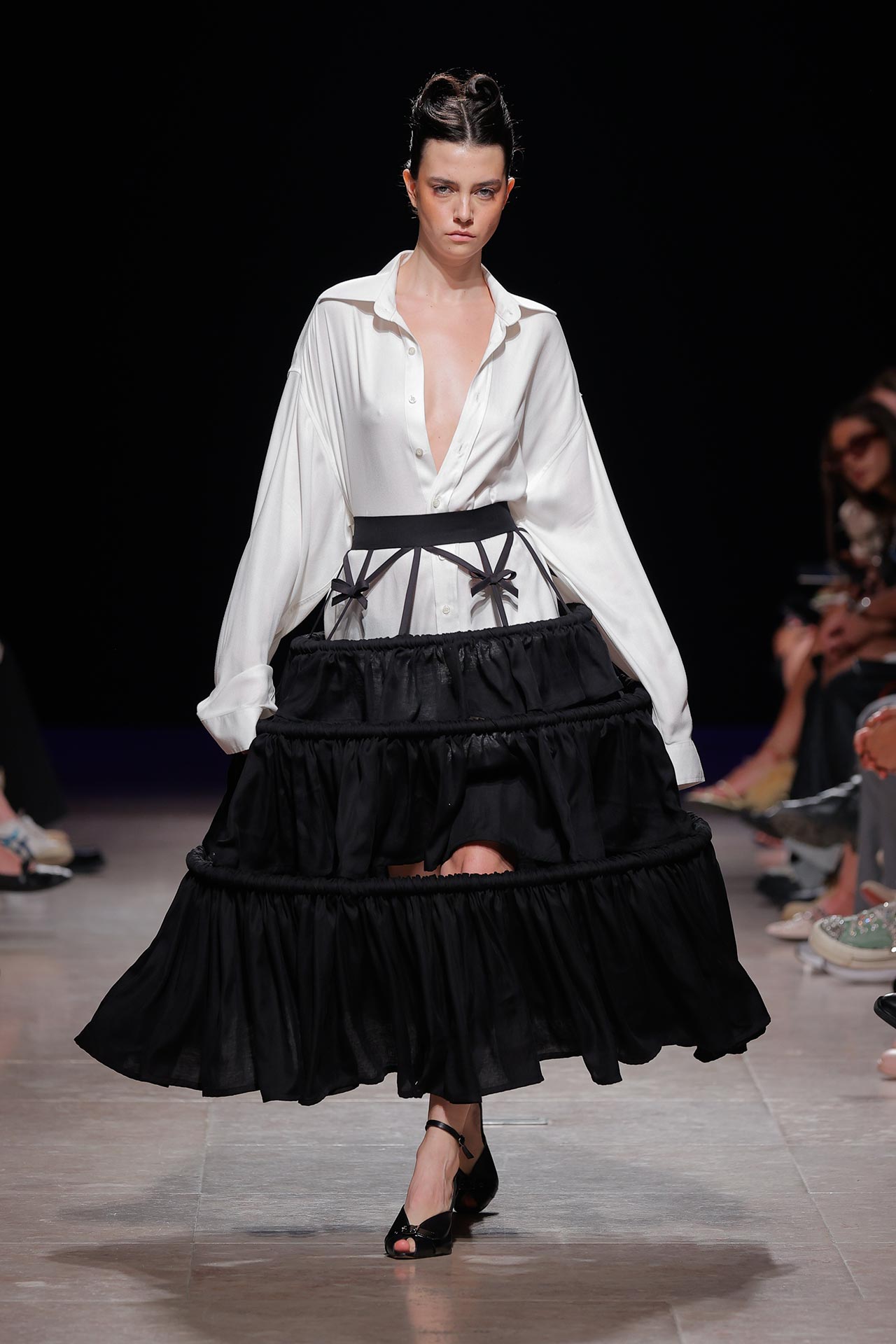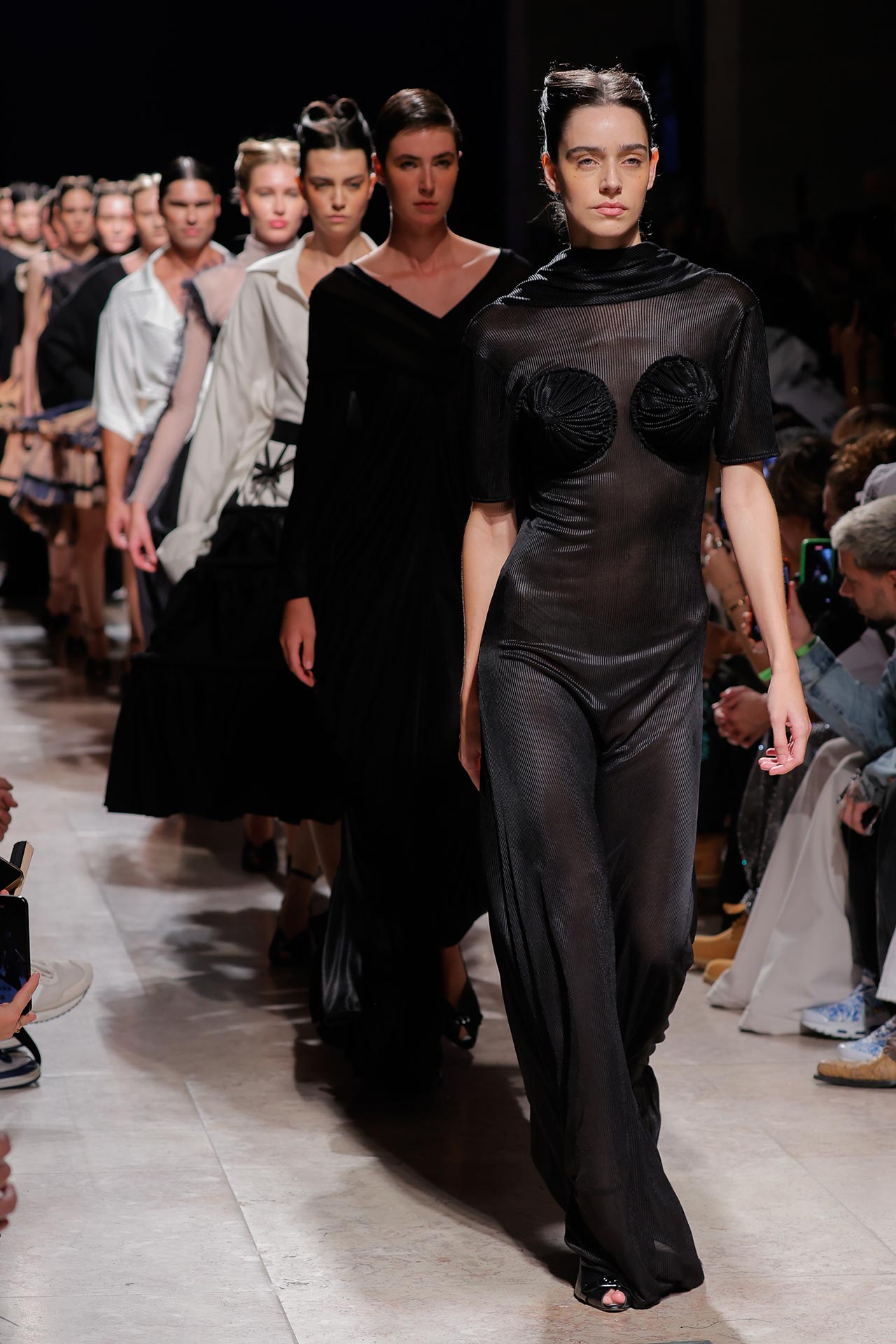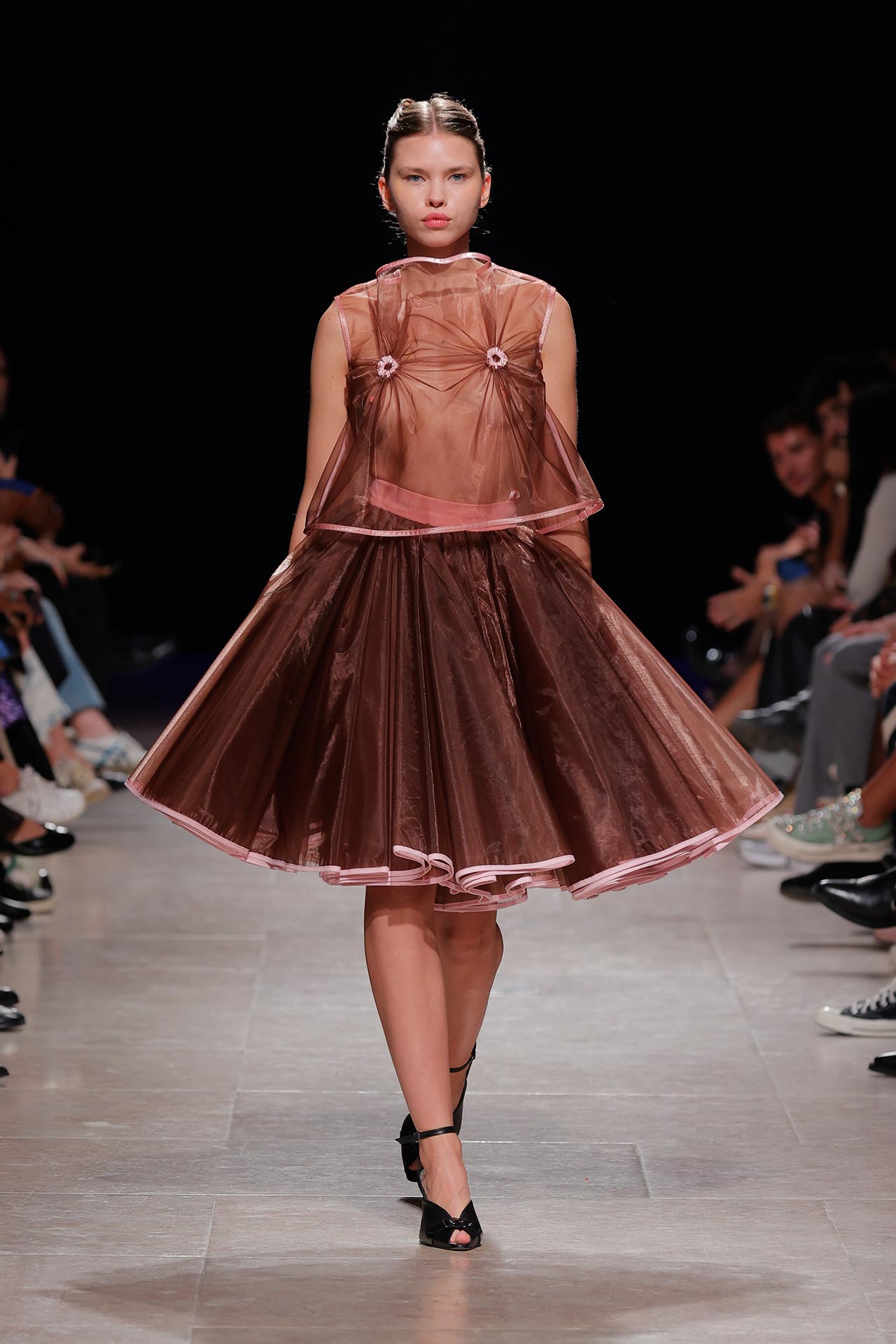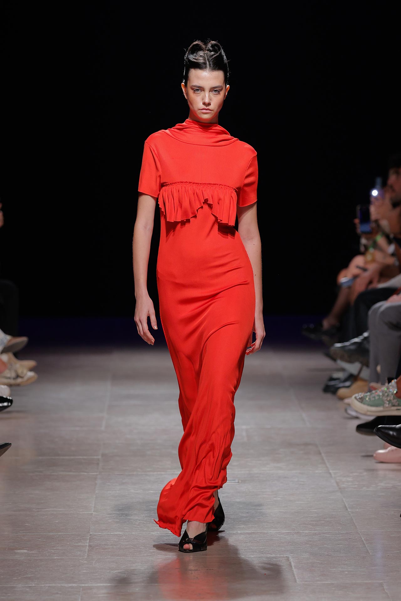 A coleção apresenta uma paleta de cores que percorre o preto, o pérola, o marfim, o verde céladon, o castanho, o verde céu, o amarelo limão, o laranja forte, o xadrez, os tecidos manchados, o azul noite, o azul petróleo, o bordeaux, o rosa chiclete e as riscas de camisaria. Os materiais utilizados incluem viscoses, algodão, satin duchese, mousselines, jerseys, organza, popeline, rede e crepe. Nos detalhes sobressaem os drapeados, os godés multiplicados, a repetição de elementos, elementos que sugerem outras peças, modelagem habitualmente usada para um tipo de peças e aqui aplicada noutras, o contraste entre oversized, o justo e o efeito crinolina. Nesta estação conta ainda com a parceria Dino Alves x Rêve de Flo no calçado feminino.