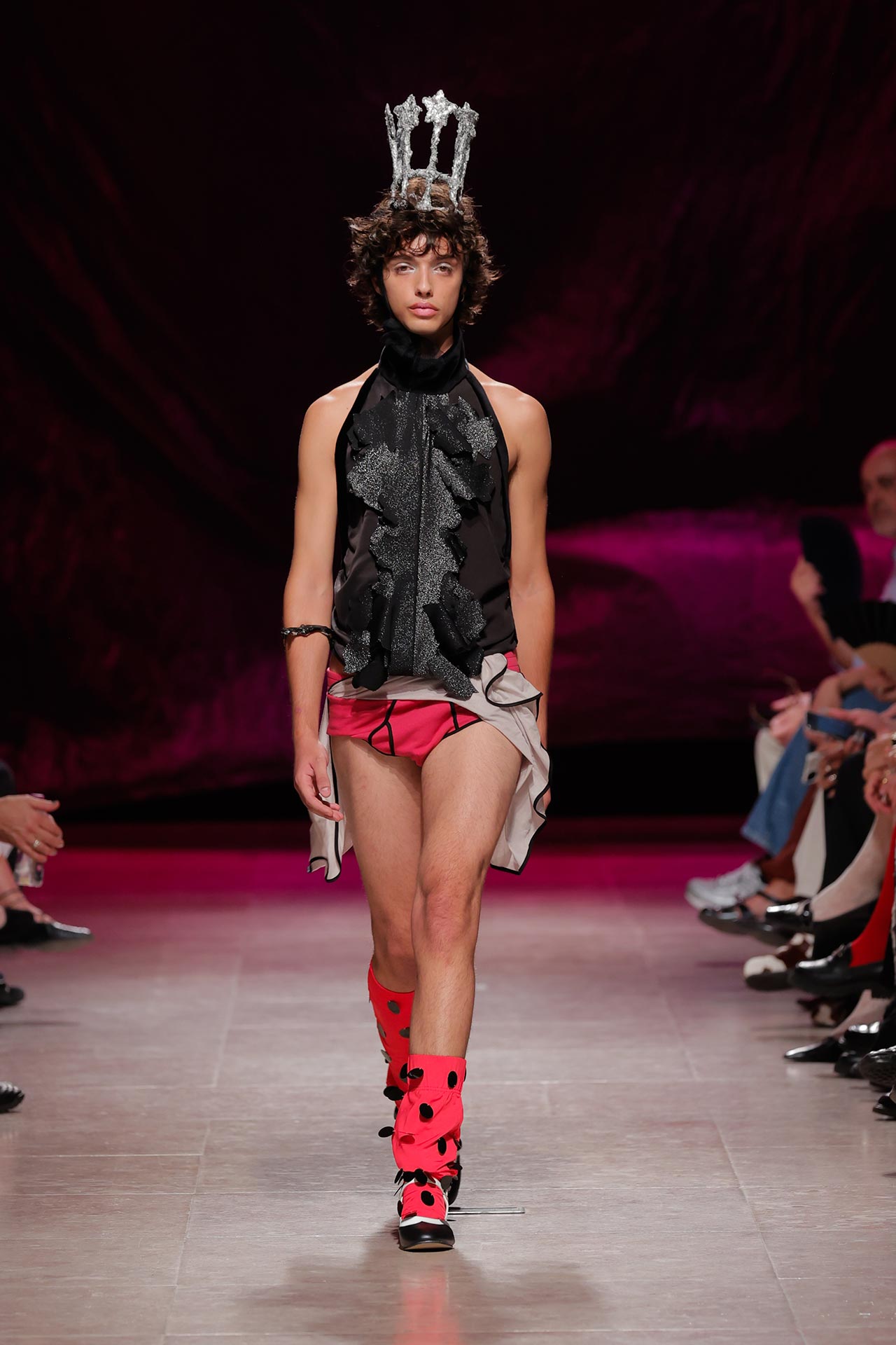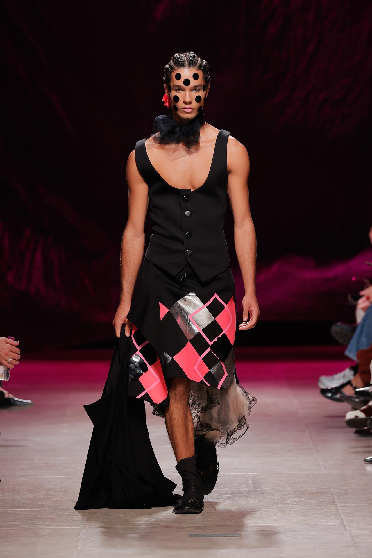 Usando referências históricas portuguesas, Gabriel Silva Barros desenhou um guarda-roupa que une comercial com elegância teatral. Um espaço “noman”, onde os contrastes podem coexistir. Uma coleção que reflete beleza, entre o drama teatral e intimidade delicada.