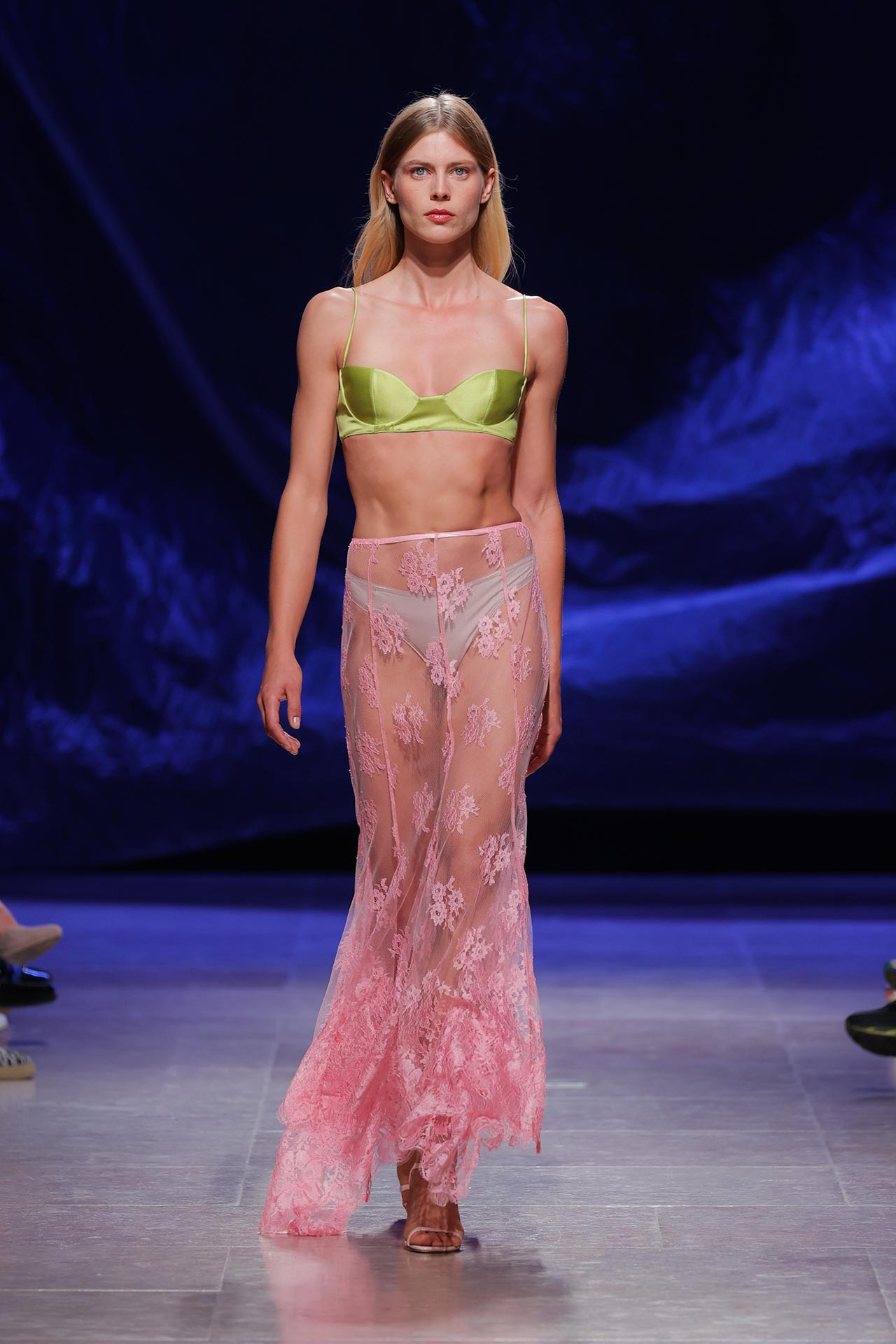 A doçura da renda contrasta com cores como amarelo, magenta e turquesa, ao mesmo tempo que distorce a paleta cromática com estampados intemporais.