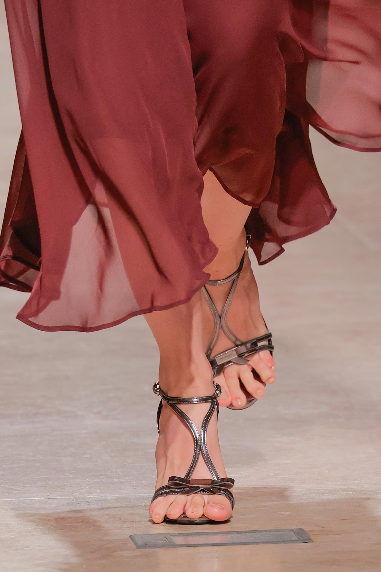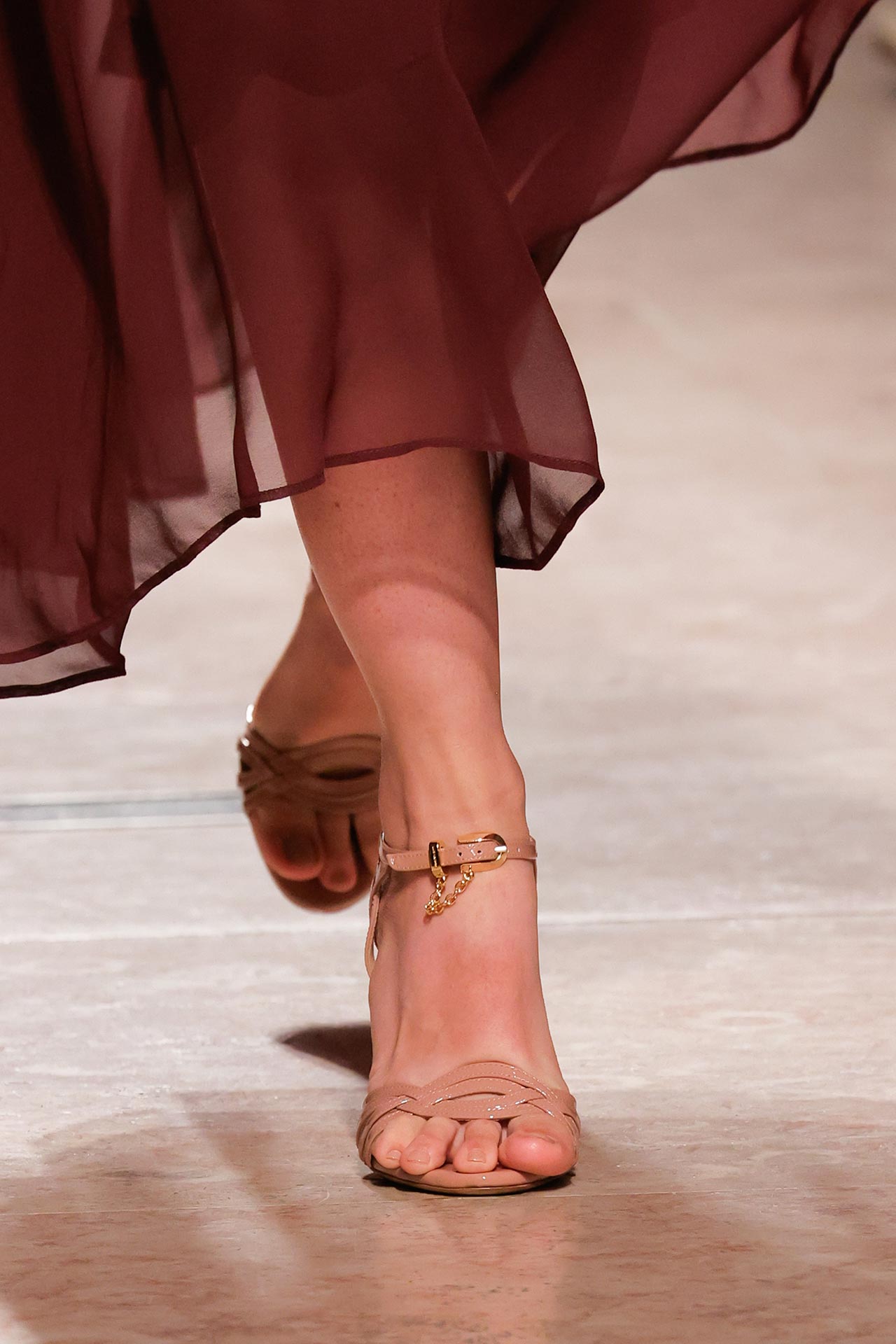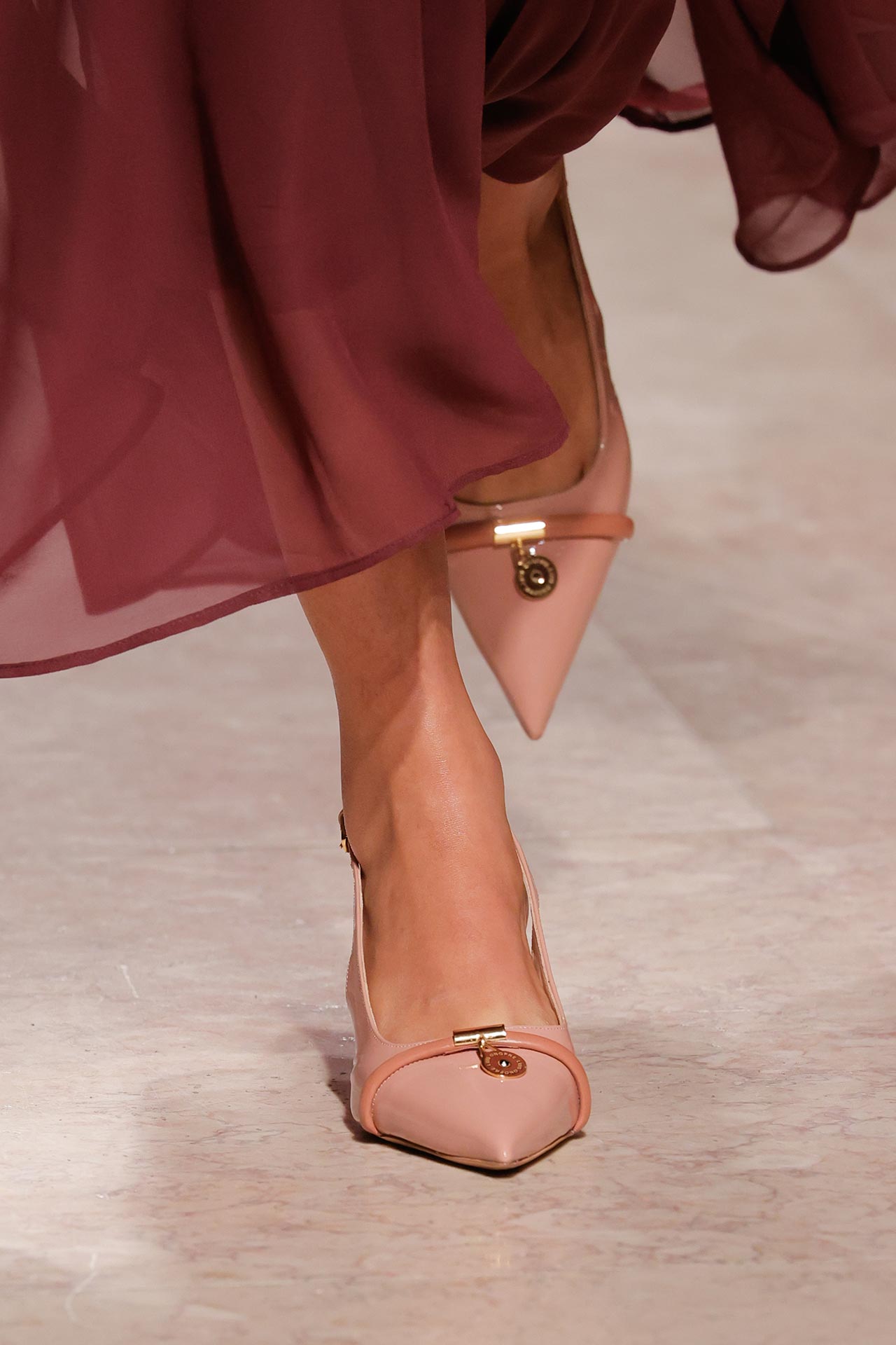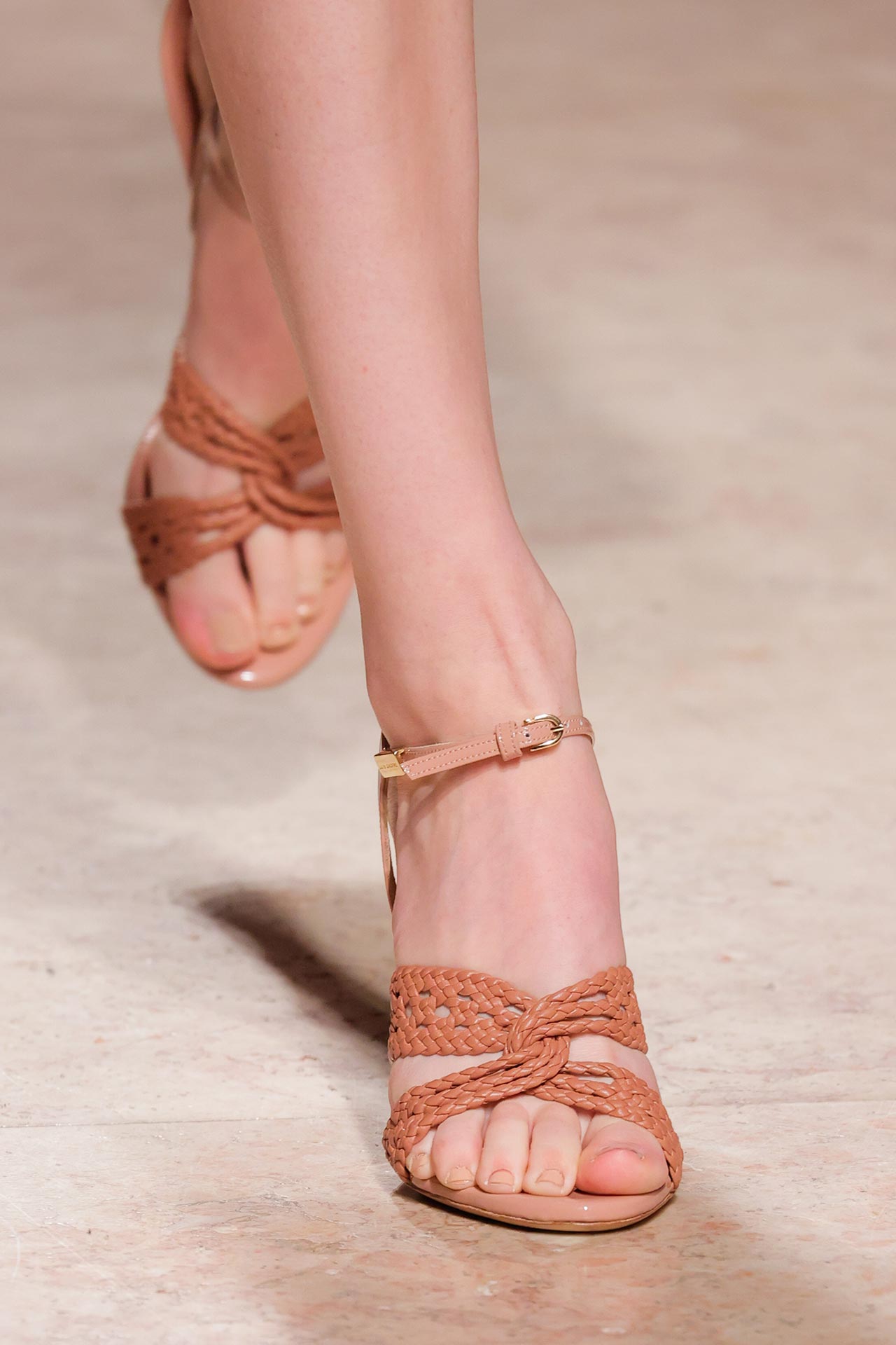 As formas dominantes revelam um espírito arrojado: stilettos de pontas afiadas desenham silhuetas elegantes, enquanto os entrançados surgem como o verdadeiro must-have da estação, conferindo textura e movimento.