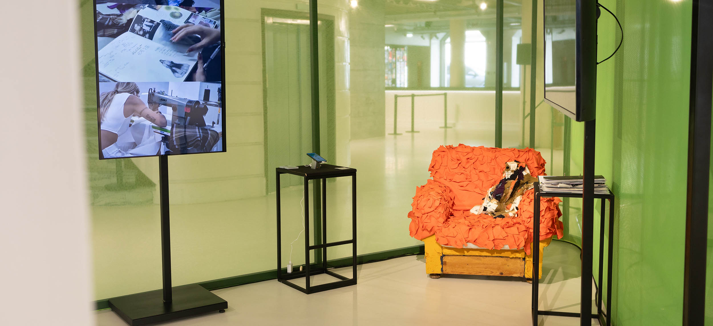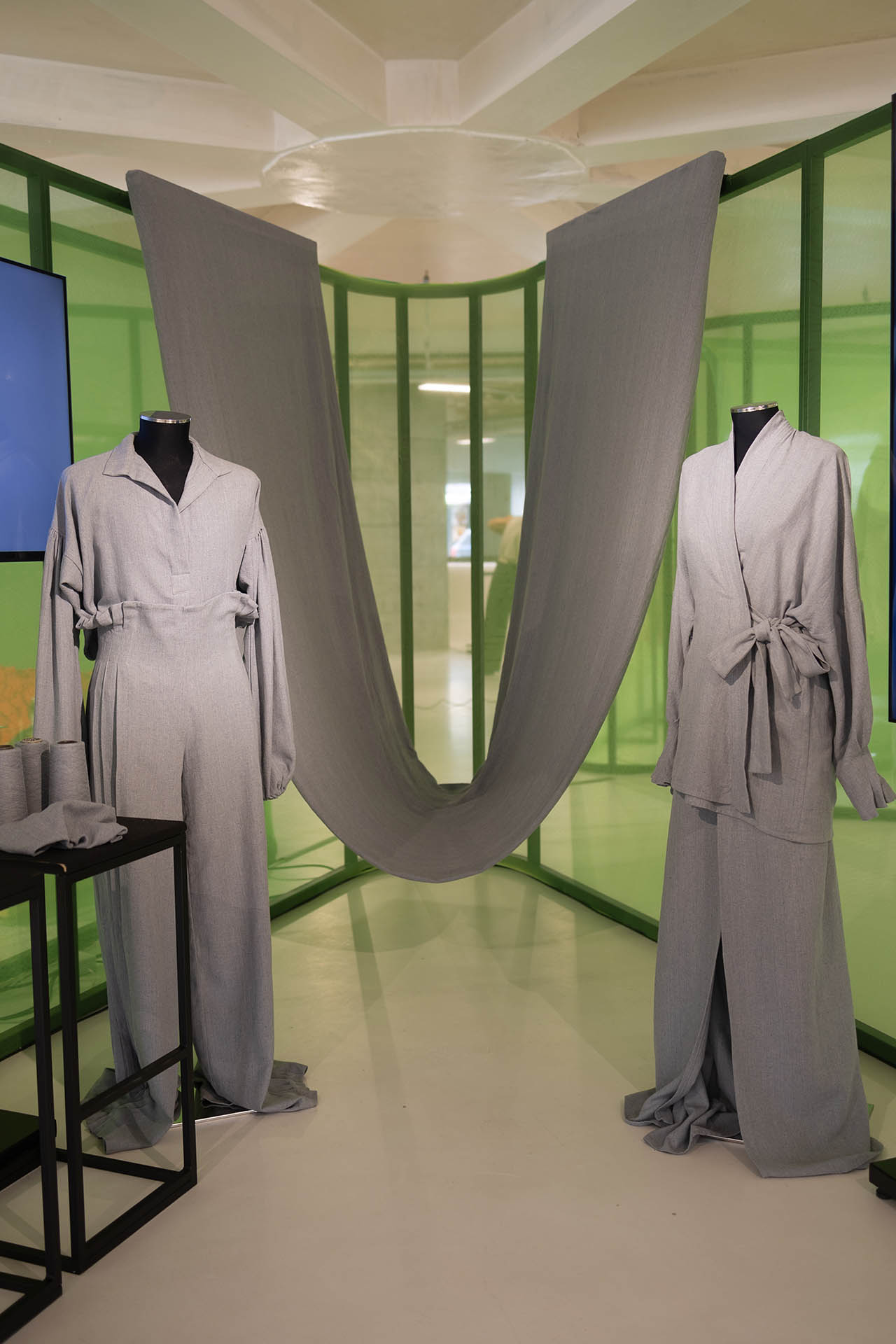 Na exposição desenhada para a MODALISBOA BASE foram apresentados quatro projetos têxteis circulares e inovadores desenvolvidos por equipas compostas por Designers de Moda e pequenas e médias empresas.