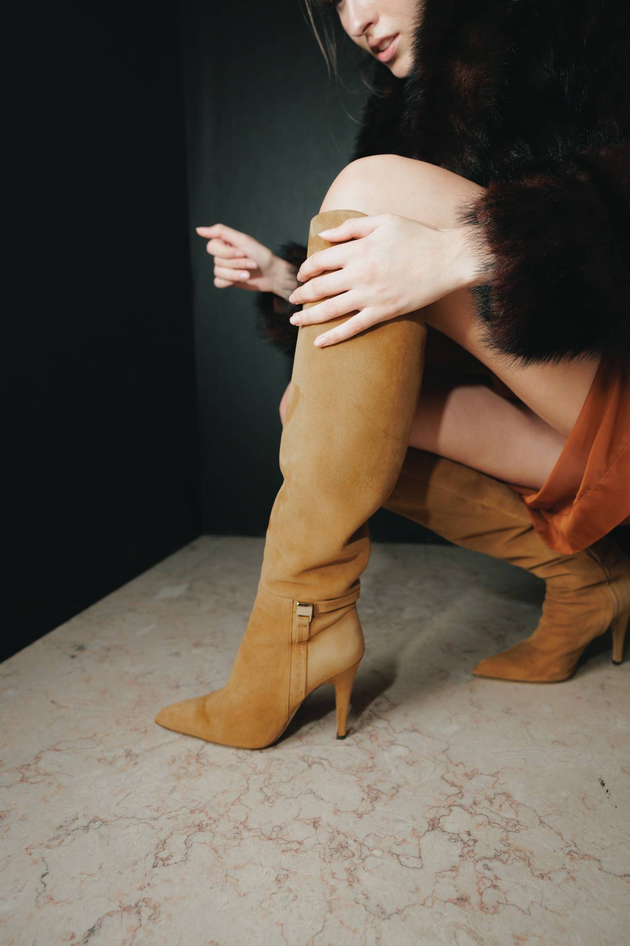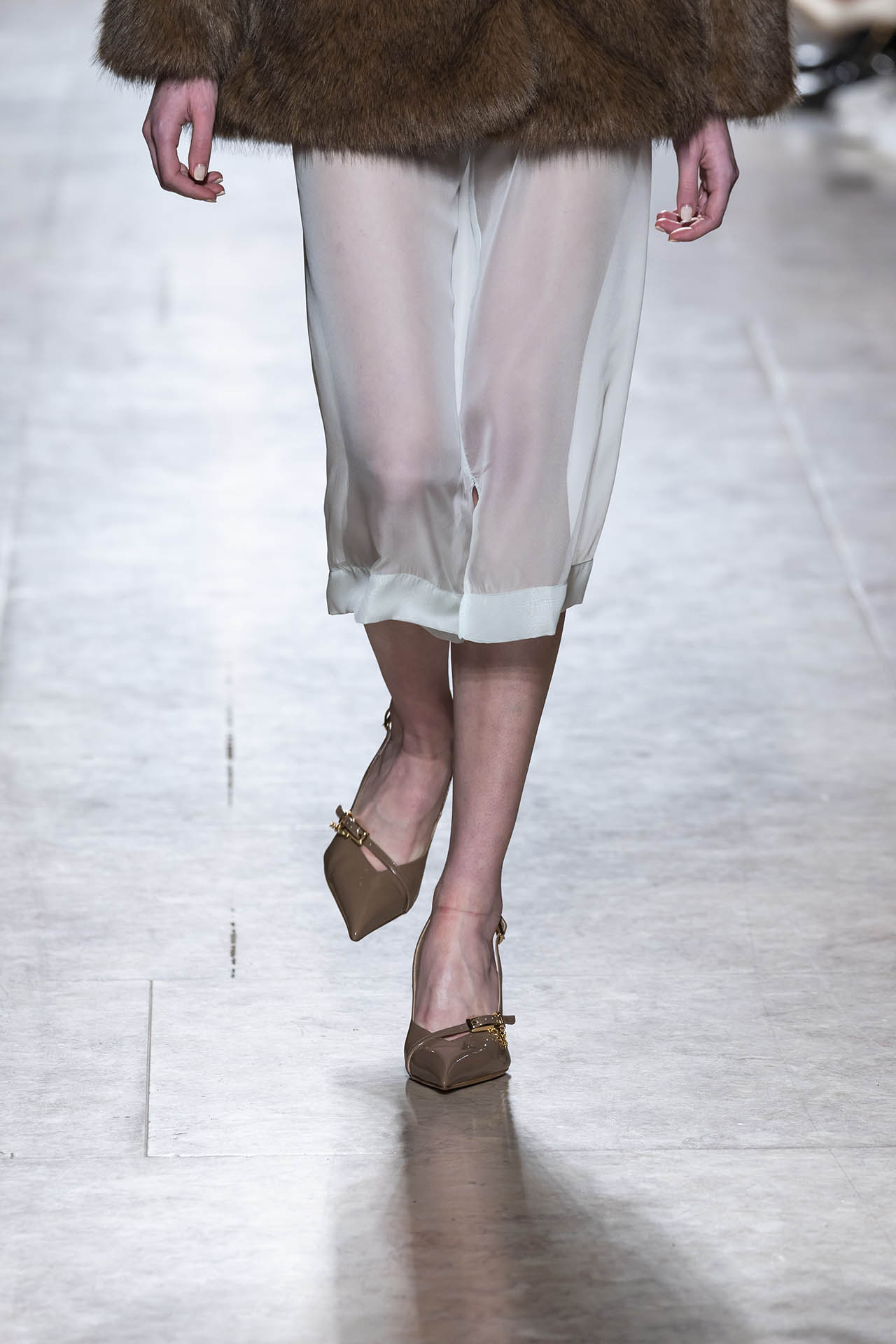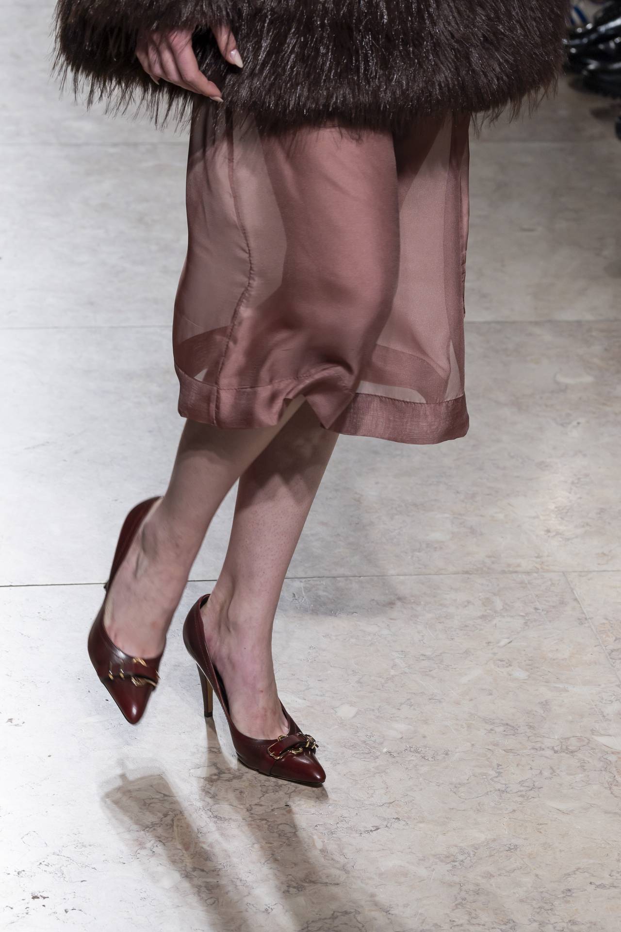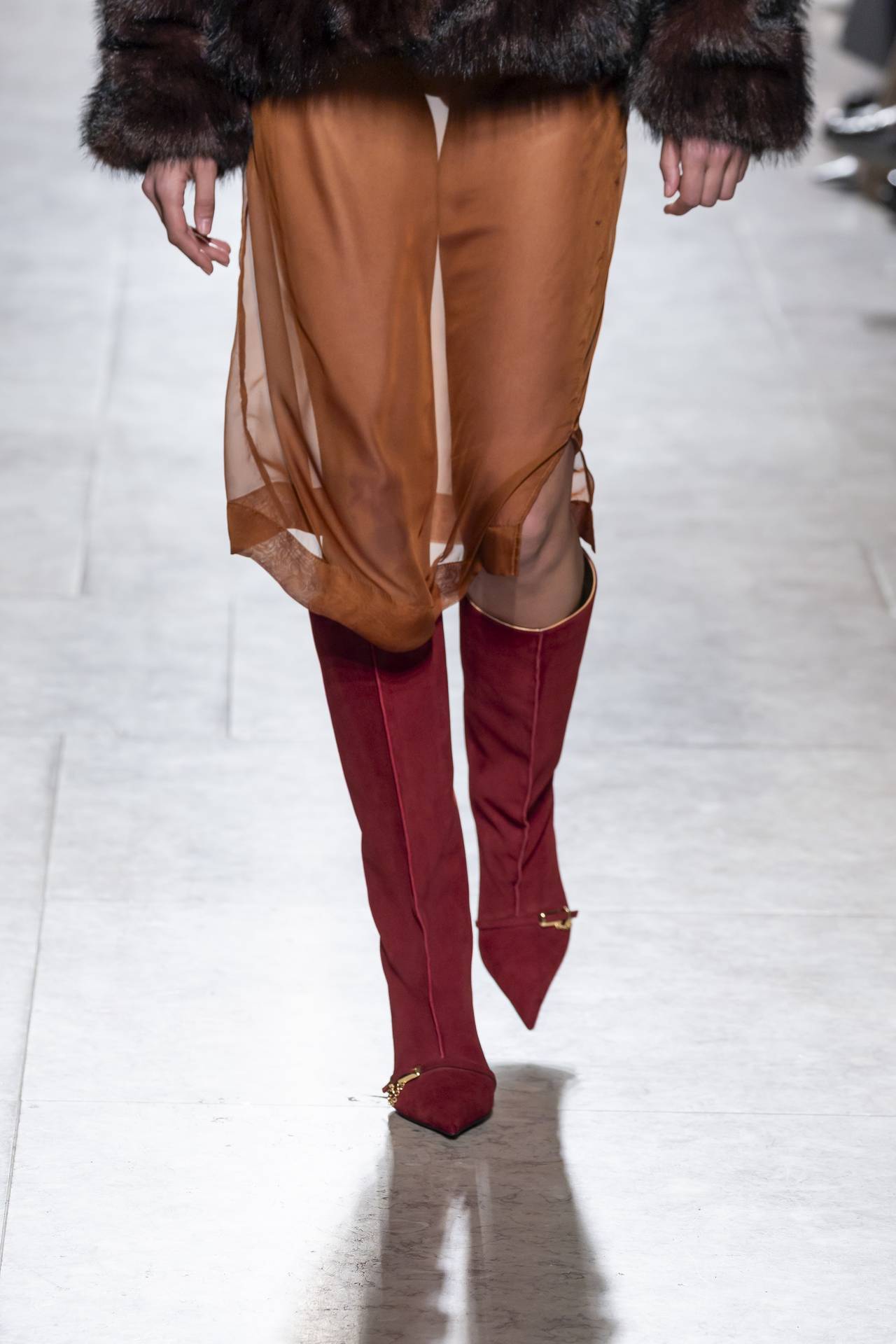 Stilettos extra pointed contrastam com formas retro arredondadas, criando tensão entre elegância clássica e ousadia contemporânea. Vernizes profundos e camurças suaves evocam o passado numa paleta sofisticada de grená, verde bosque, bordeaux, tan, taupe, castanhos intensos e preto absoluto. Sem cristais, a força reside na pureza das linhas e na silhueta.