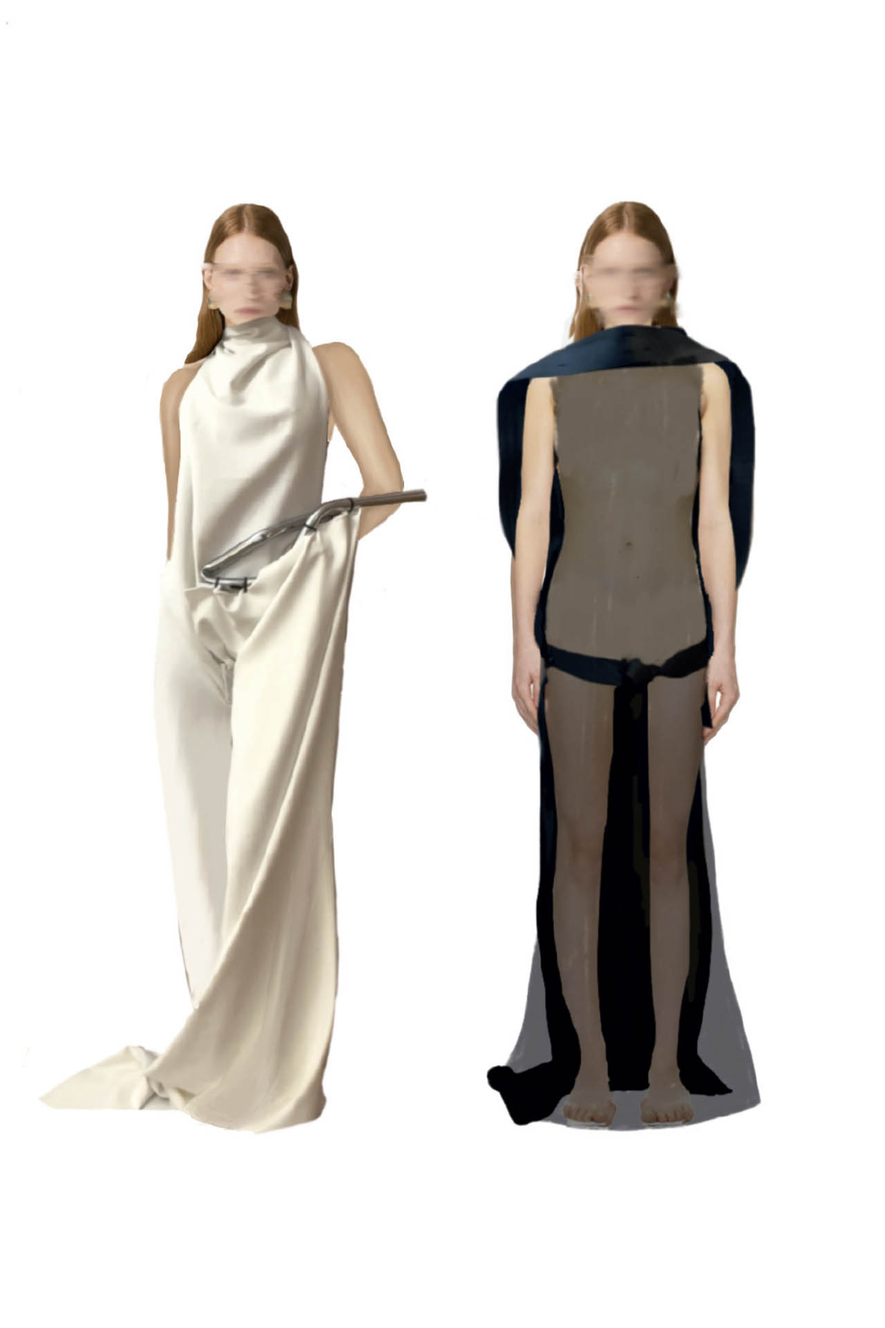 COTA 0.1 inspira-se no poema “Hope is a Thing with Feathers”, de Emily Dickinson, que apresenta a esperança como uma força constante. A coleção desenvolve essa ideia a partir da imagem captada por Mateus Cunha, ao qual uma mulher avança com determinação, e o movimento do vestido reforça a sensação de continuidade. A referência a Loïe Fuller manifesta-se na forma como o tecido acompanha e amplifica o gesto do corpo.
